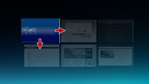 The display changes to accommodate the number of opened windows. Select a window by using the directional buttons, and then press the