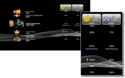 In a profile, you can view information such as trophy progress, the number of trophies earned for each grade and detailed information about your Friends. You can cycle through the information by pressing the L1 or R1 button.