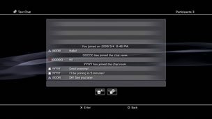 - The text chat feature cannot be used if restrictions on its use are set. For information about parental control settings, see [About XMB™ menu] > [Using the parental control settings] in this guide.